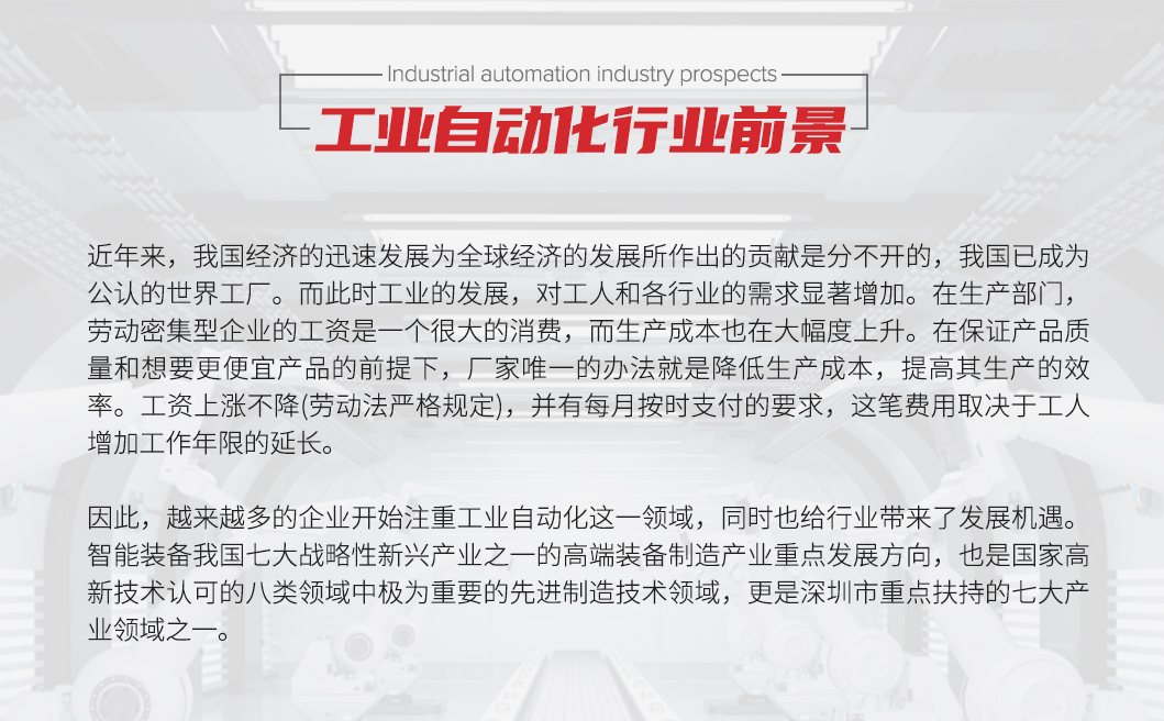 公司专注于工业自动化设备的销售与技术服务,业务涵盖精密光电连接器、建筑门窗五金、3C电子电器、医疗器械、汽车配件、安防安保等领域,为客户提供成熟可靠的自动化设备及定制化技术解决方案。